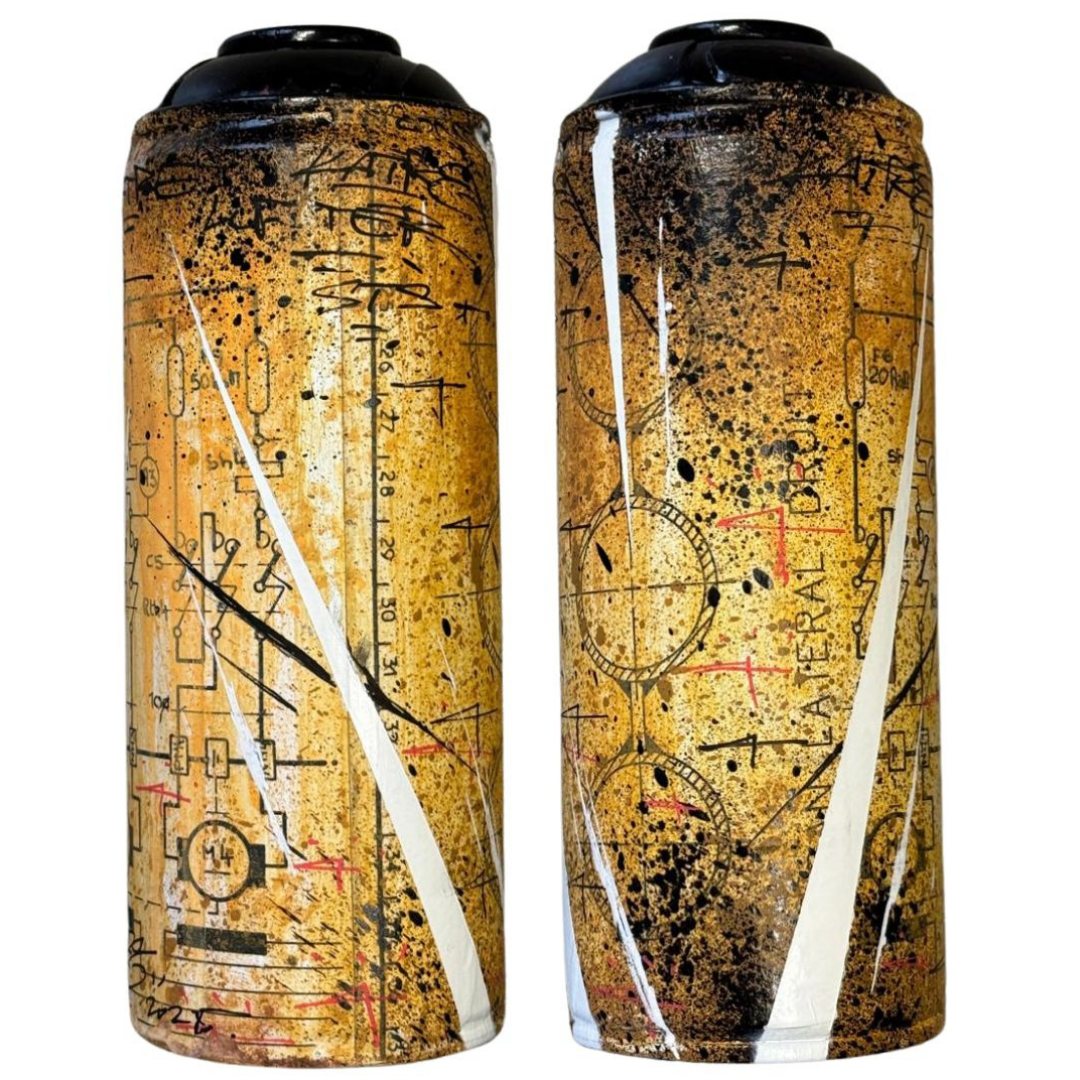 Acrylique, aérosol et marqueur sur plan marouflé sur bombe