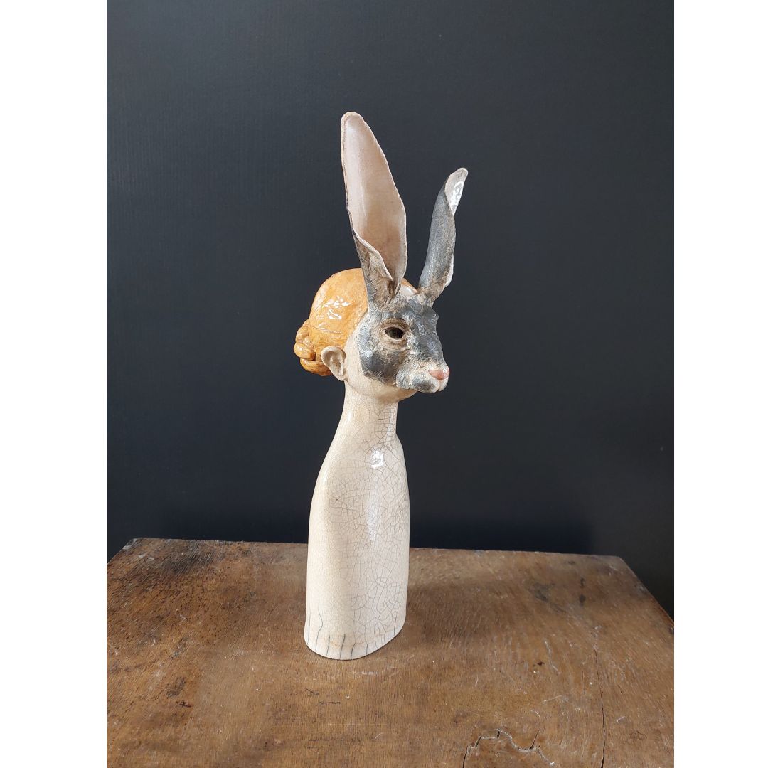 Marine Teplitxky, céramiste autodidacte crée des sculptures animalières en grès chamotté cuites selon la tradition japonaise Raku.