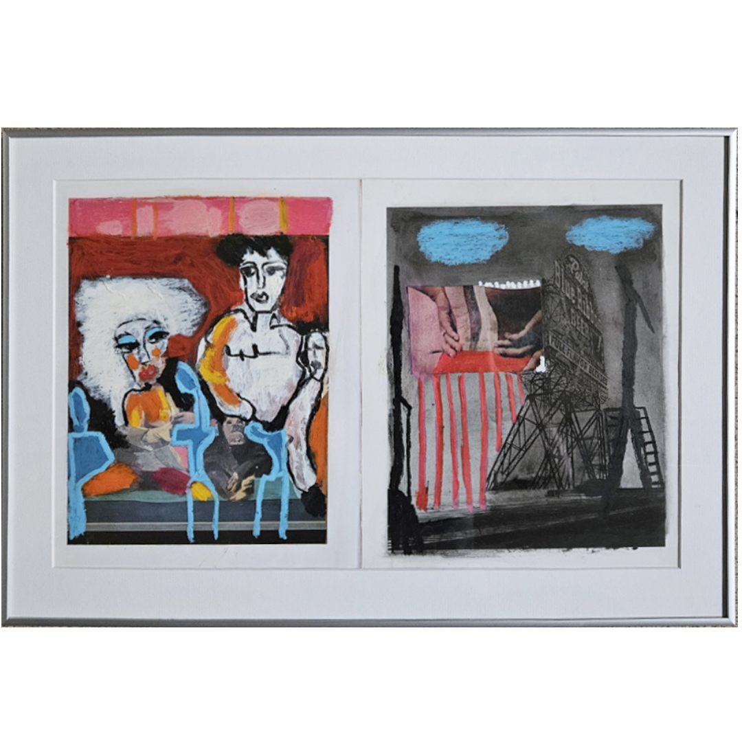 Proche de l’art brut, ses compositions figuratives mêlent peinture, collage et texte.