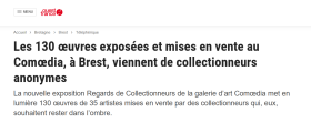 La Galerie Le Comœdia ouvre gratuitement au public sa nouvelle exposition au public, Regards de Collectionneurs. Six collectionneurs brestois, bretons et parisiens participent à l’événement. Ils ont tous souhaité l’anonymat pour que l’attention se concentre sur les artistes et non sur leur histoire intime